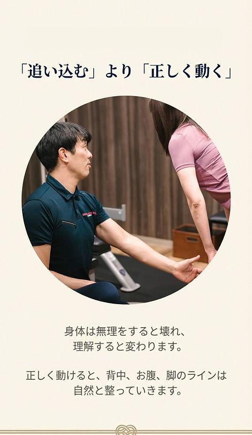 現在は、女性のボディメイクや更年期世代のケア、ご高齢の方の筋力維持に加え、男性の筋力向上や健康維持のサポートも行っています。